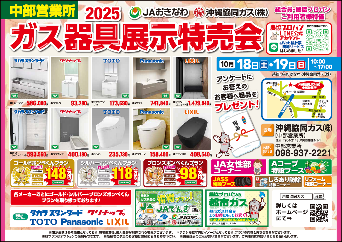 10月18・19日に中部営業所(沖縄市)にてガス器具展示特売会を開催いたします!