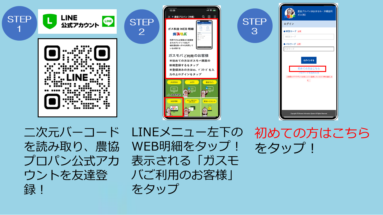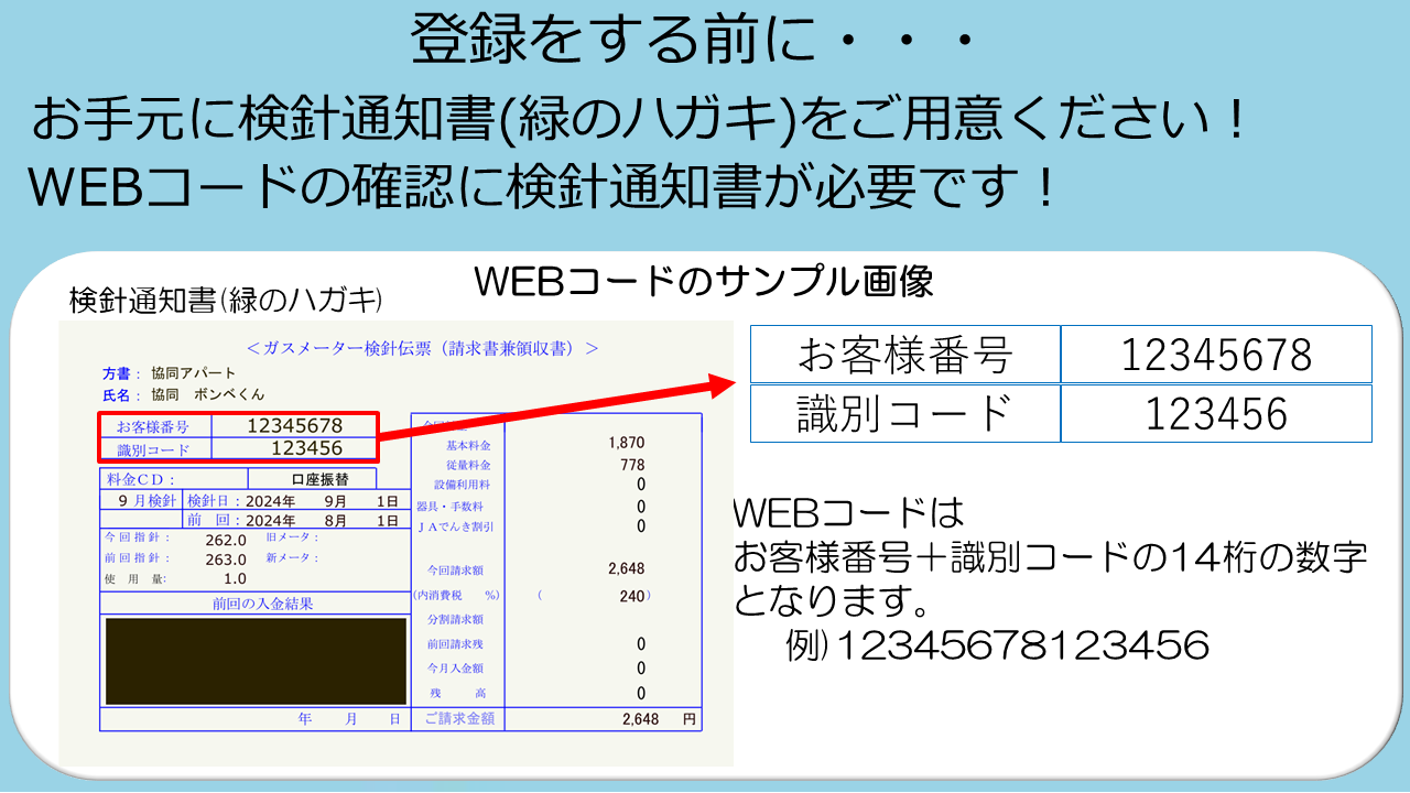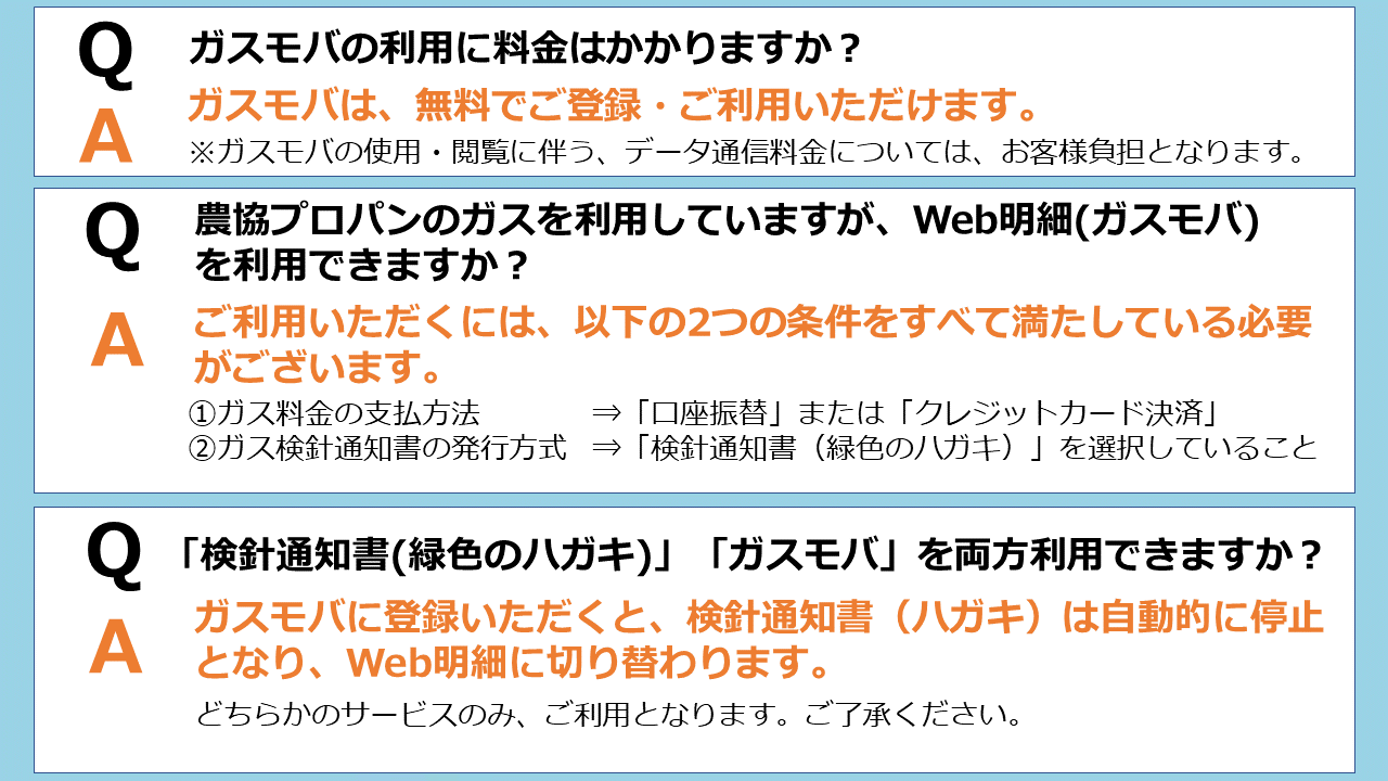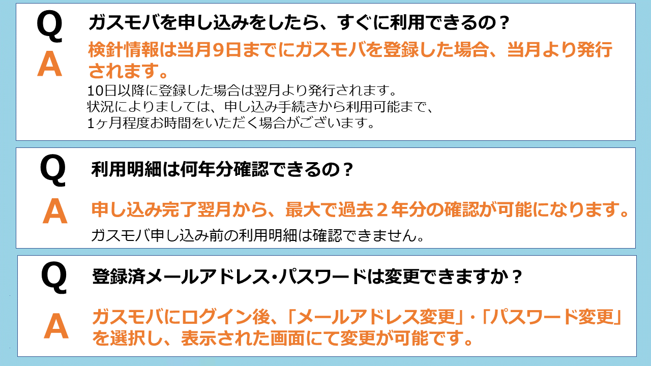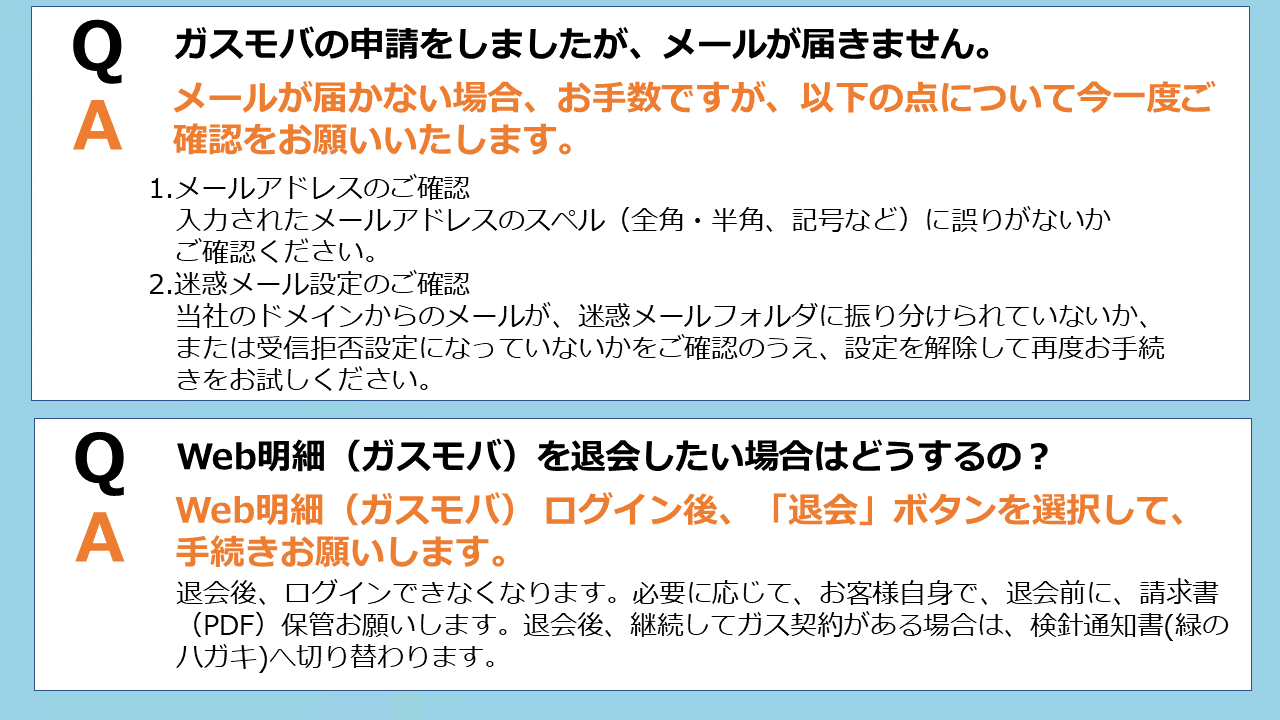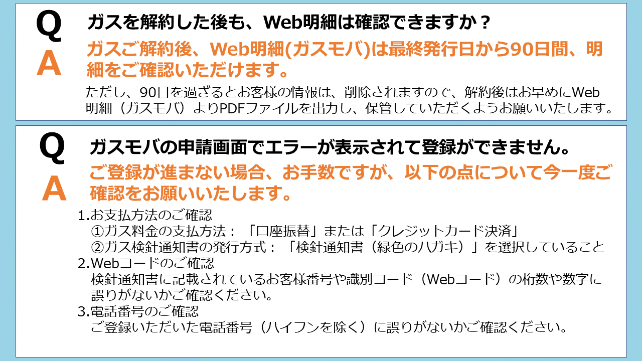・事前にお客様にてWeb明細登録(ガスモバ利用の登録)が必要となります。