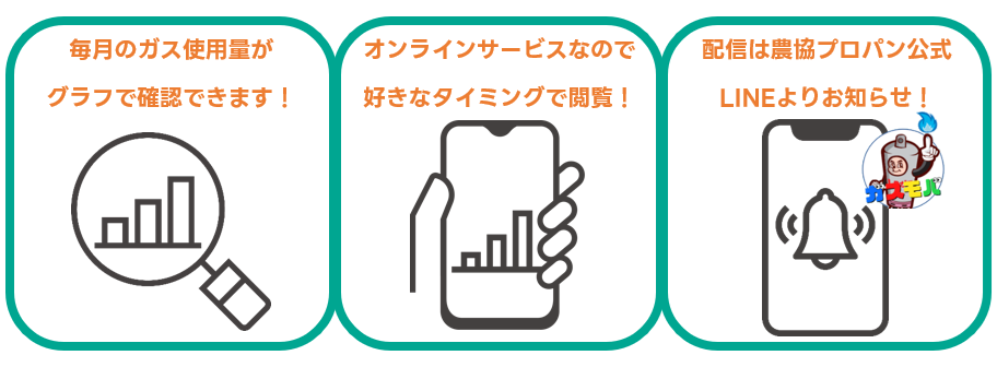 ガスモバとは、お客様がスマートフォンでWeb上からガス料金・使用量を確認できるサービスです。