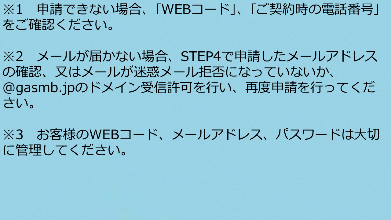 ※詳細については、登録時に「ガスモバ(WEB明細サービス)」に関するご利用規約をご確認ください。